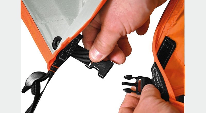 On the interior the Eluminate System: a center utility hook and two removable reflective fabric panels, allow light from your LED lantern to reflect downward, maximizing your lighting. It increases your lighting up to 3x and works wonderfully. Two storage pockets and an included Gear Hammock make it easier to stay organized.