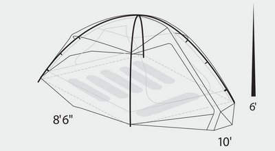 The 6-person sleeper measures 10′ x 8′ 6″ with a maxium center height of 6 feet allow many adults to stand up naturally at the center and packs down to 8″ x 23″ at 14 lbs. 8oz. At this weight the Taron is not designed as a backpacking tent but offers excellent functionality and security from the elements. It can deal with strong winds and gusts much better with the Vectored struts and sturdy aluminum frame structure.