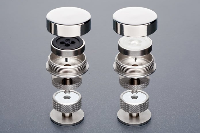 They snap together in a two-piece design that is easy to use and stays put. You won’t have to worry about losing them as they marry with a magnetic/snap closure system. The center has a post that marries and locks with it’s opposite half. The magnetic properties help to guide the connection but the “snap” portion really locks it in place.