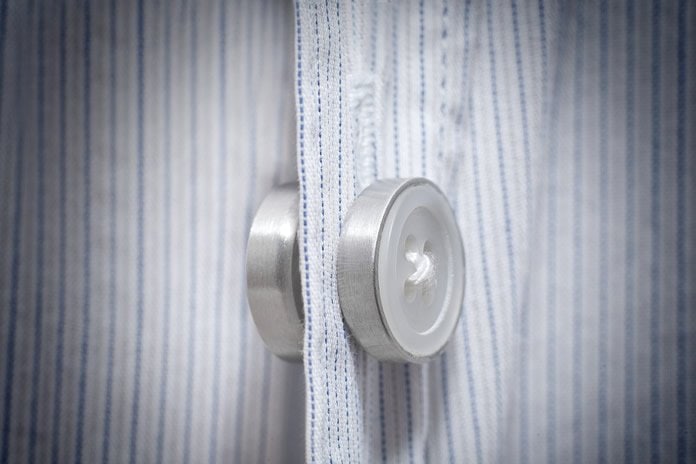 Loose a shirt button? You can even spin off the caps entirely, drop the button pieces out and screw the two together for a quick field repair on your shirt. There’s a black button in one side and a white button on the other. Poke the pointer through your shirt, the magnetic properties will help let you know it’s in place and then spin them together to secure the button, very clever.