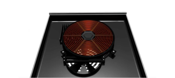 Under the heat resistant glass surface are a series of copper coils spaced out in a circular ring pattern. It are these copper coils that generate a magnetic field that will generate heat in magnetic; iron and copper pans. The heat is generated directly at the pot leaving the heating element itself to remain cool. Fagor demonstrates the induction technology by placing a dollar bill between the Induction Pro and a pot of boiling water. The water boils while the dollar bill won’t burn, cool!