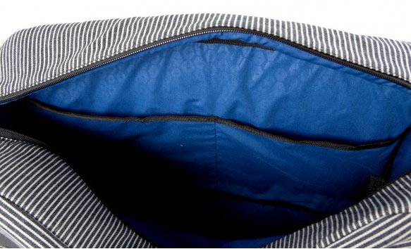 One pocket is fleece-lined and padded for your tablet while the other is for general storage, wires, plugs and even comes fashioned with an organizer for your pens and tickets etc. On the opposite side of the bag is another padded exterior access pocket large enough to fit up to a 15″ laptop. Two additional interior pockets allow you enough places to separate what you need to indoors.
