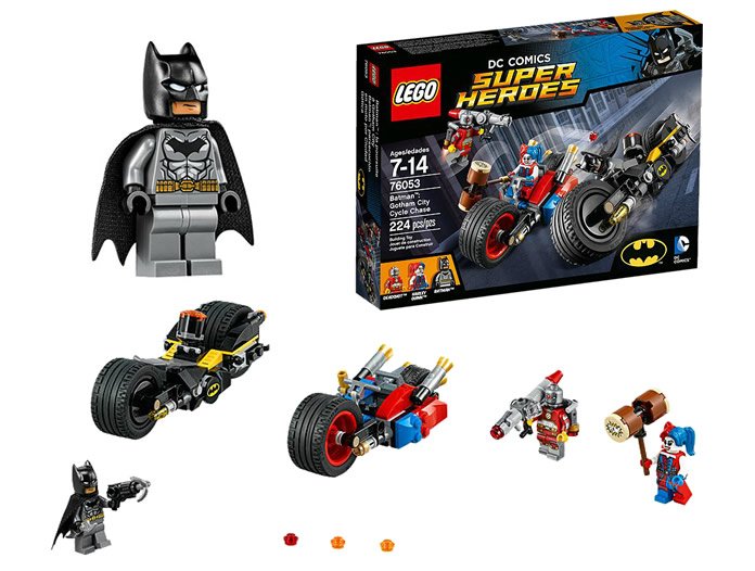 The Gotham City Cycle Chase Batman themed LEGO set comes with two sizable motorcycles including Batman, Harley Quinn and Deadshot. The Gotham City Cycle Chase set is a value packed set that your boys will love to play with.