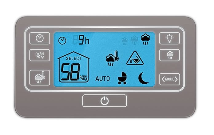 Three automatic modes (or Intelligent modes as Rowenta refers to them) provide you with preset levels; Auto, Night and Baby mode. The presets allow you to set your humidity levels with a single touch. A backlit Digital LCD panel provides you with onscreen indicators using the physical button controls just below it. An onboard Hygrometer sensor monitors ambient moisture levels and automatically adjusts based on your set percentage of output. To our surprise the onboard hygrometer and our stand alone LCD hygrometer seemed to line up relatively closely, though historically these little sensors never really worked that well. Your mileage may vary.